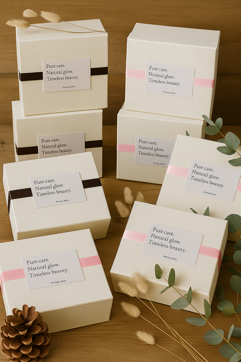 Elk Cadeau Pakket is zorgvuldig samengesteld met 100% natuurlijke, biologische en zuivere producten voor huid én zintuigen.